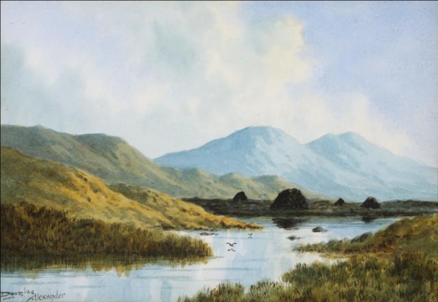 ‘Douglas Alexander was born in Limerick, the son of a Quaker family who owned a grocery and ship’s chandlery business at the corner of William Street and O’Connell Street. The Goodwin Galleries Limerick and The Victor Waddington Galleries Dublin both exhibited his work on a regular basis. He also exhibited in the RHA and the Dublin Sketching Club in the 1930’s. Although for several generations members of the Alexander family were prominent in Limerick in both business and Philanthropic pursuits, Douglas, ended his days in poverty.’