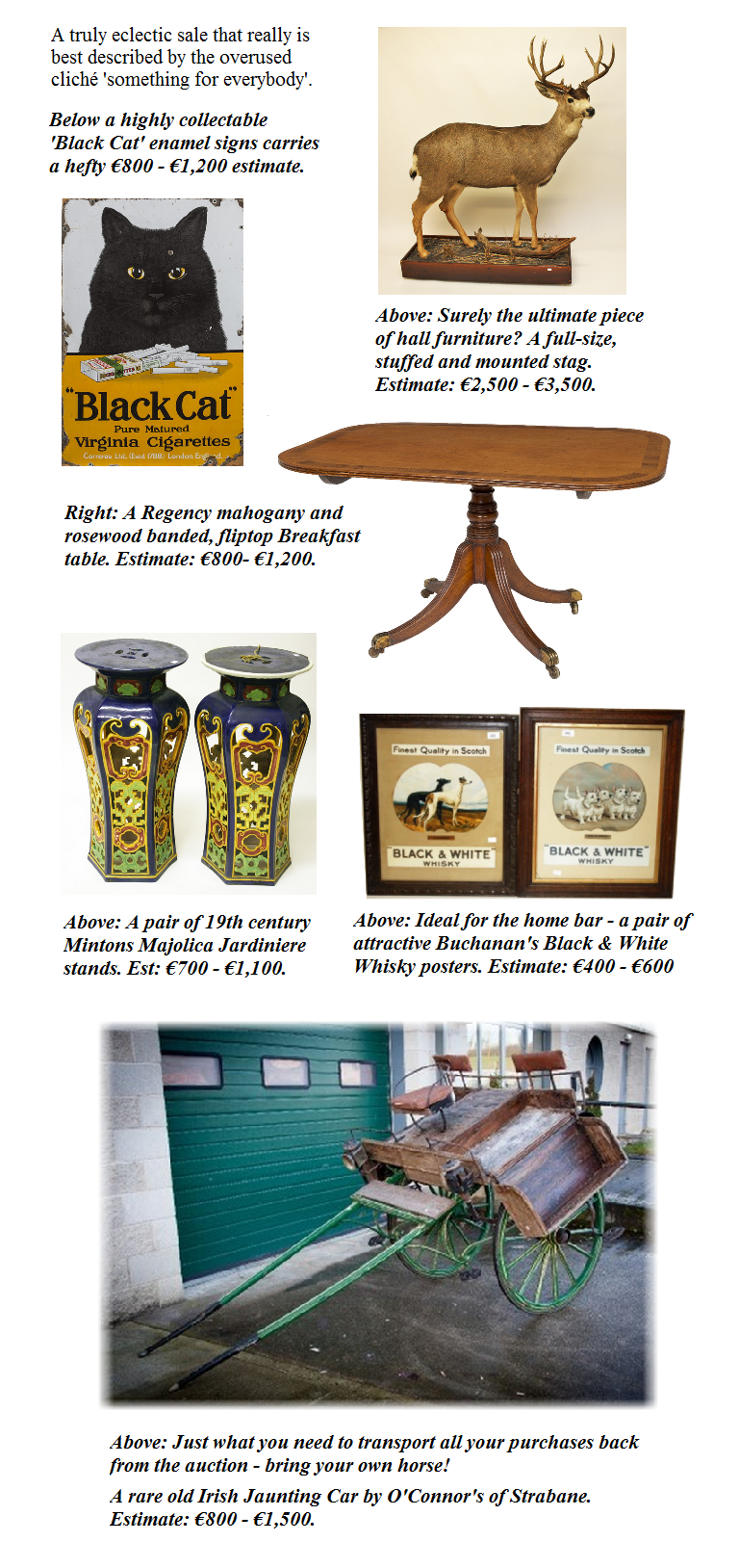 The sale includes the collection of the late Dr.Oliver McCullen of 3 Clyde Road, Dublin.4. on the instructions of the representatives of the estate; the collection of Ms.Carolyn Denise Watson-Merret, formally of Riverside Cottage, County Cavan; and an array of fine and decorative art from other Irish estates and collections.