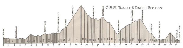 The Tralee & Dingle Light Railway (1891-1953) ran between Tralee and Dingle some 31 miles distant with a short branchline to Castlegregory. To say that it was built on the cheap would be a serious understatement and its dangerously steep gradients and sharp curves were the bane of train crews for the lines entire existence. Several serious accidents occurred over the years including one only two years after the railway opened!
