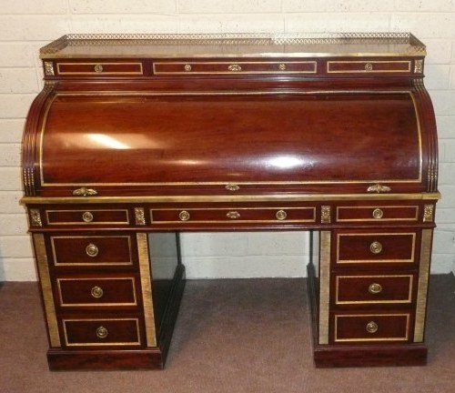 Lot.157. A fine antique French mahogany and brass bound cylinder top desk with satinwood fitted interior, circa 1860. Est. €3,000 – 5,000