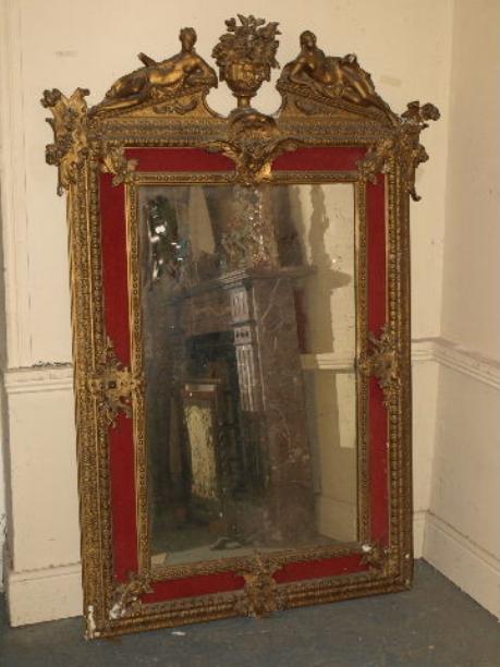 Lot 957 :Large 19thc giltwood pier mirror with broken arch pediment & elaborate foliate & classical decoration. Est. €300-500