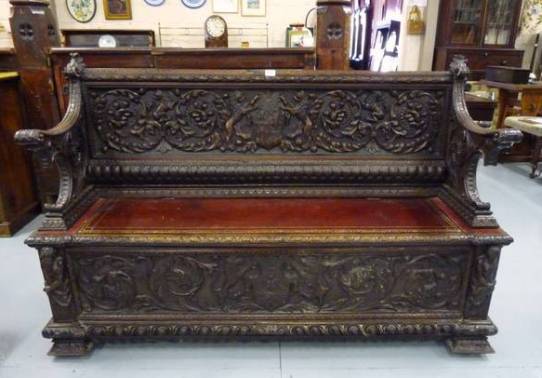 Lot.412. Mid-19th century carved Walnut Hall/Marriage Bench at €1,500 – €1,800